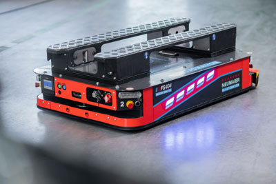 The Factory Shuttle FS400 from Neumaier Industry GmbH is convincing - automated, smart and self-organised, it improves not only the internal material flow, but also the entire value chain. Just-in-time provision of goods with short throughput times and optimal utilisation speak for themselves. "To achieve such a performance within a very short time is only possible because we have the experience in machine and vehicle construction as well as our own component production and mechatronics in-house," notes Neumaier's managing director Bernd Neumaier.