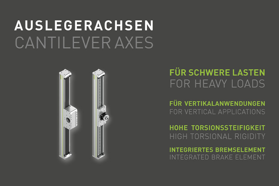The cantilever axes are also impressive: the high rigidity of the cantilever and the low moving mass make the linear axes particularly suitable for dynamic applications with high loads in vertical applications. The closed aluminium profile gives the cantilever high torsional rigidity despite its low weight. Like all our linear axes, the new bridge axes and cantilever axes can also be individually configured here.