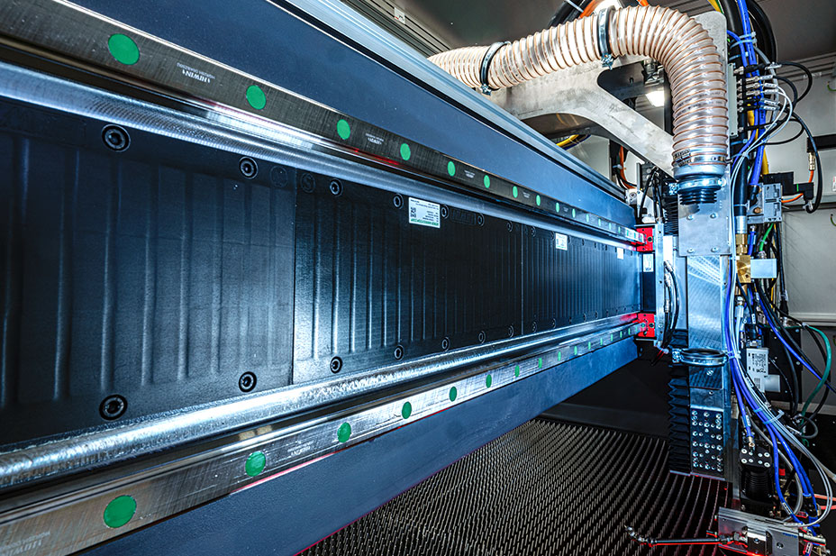 In addition to the very successful stroke/length ratio of this machine – especially the Y-axis (2120/3000) – and the compatibility of the two processes, laser cutting and welding, the integrated large-volume extraction system is also worthy of mention. “Here, the requirements for the purity of the filtered exhaust gases, which are contaminated with particles hazardous to health, are particularly high,” reports David Müller. ”We now have an extraction capacity of 10,000 cubic meters per hour here. That's quite something.”
